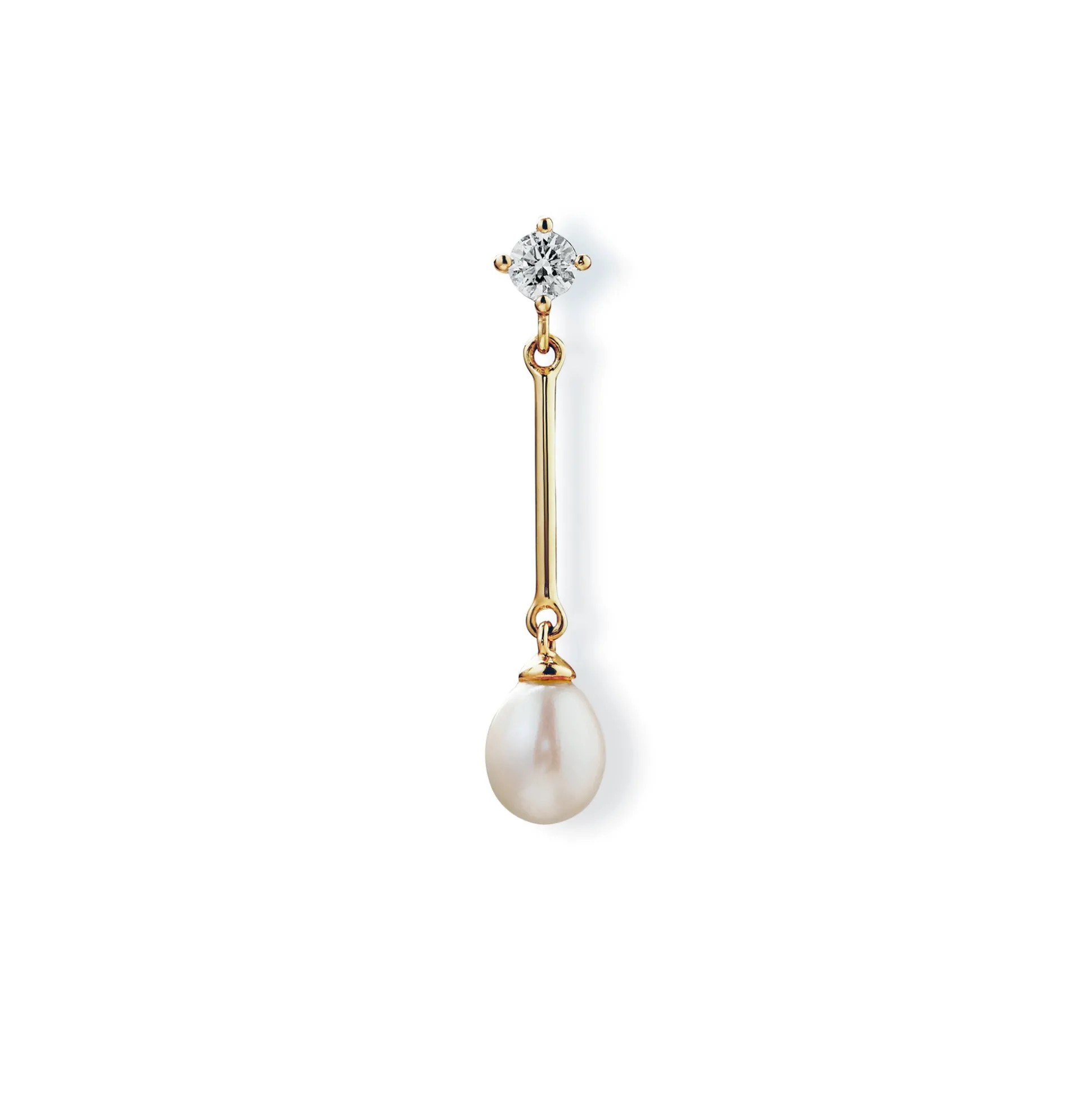 Cette Boucle D’Oreille Est Confectionnée Avec Un Seul Diamant Gris De Taille Ronde, Totalisant 0,144 Ct, Maintenu Dans Un Serti Griffes, Puis Serti D’Une Barre Fine Contrastée Et D’Une Perle Brillante.