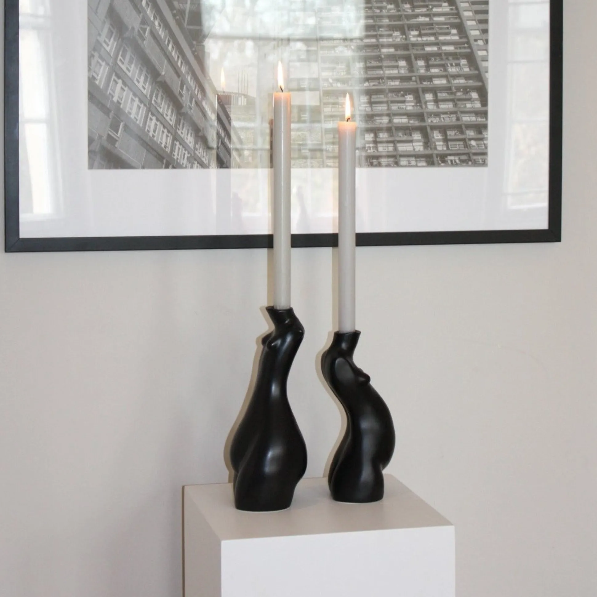 Affichez Des Bougies De Dîner Coniques Dans Ce Bougeoir En Forme De Figure Exagérée, Une Pièce De Conversation Audacieuse. Fini Avec Un Magnifique Vernis Mat, Ce Court Bougeoir En Céramique A Un Attrait Délicieusement Espiègle Qui En Fait Le Complément Parfait Aux Bougies De Dîner Colorées Dans Une Salle À Manger.