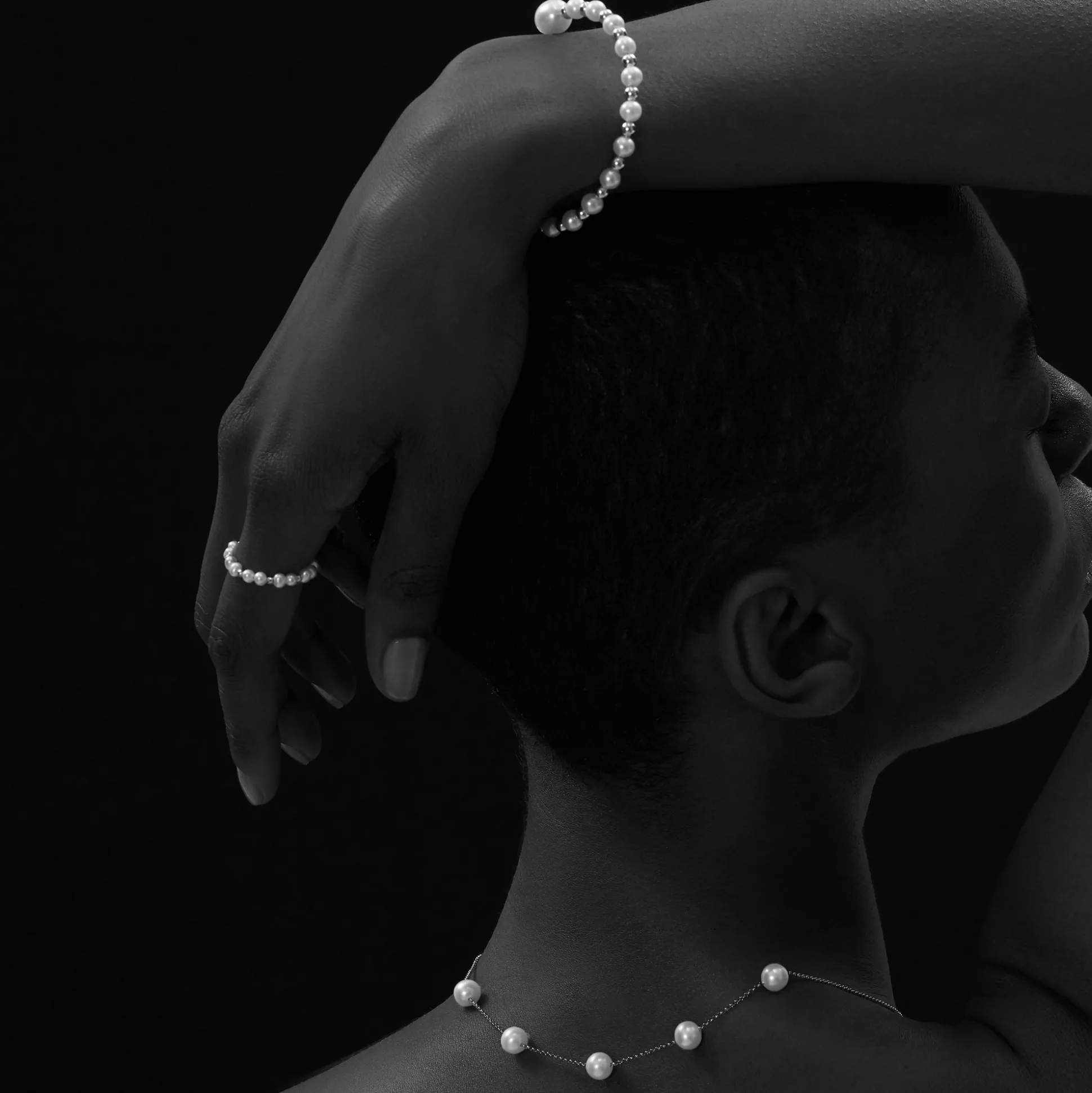 Offrant Une Version Légère Et Contemporaine Des Bijoux En Perles Classiques, Ce Bracelet Met En Valeur Une Silhouette Classique À Manchette Ouverte, Enfilée D’Une Chaîne Alternée De Perles D’Eau Douce Et De Perles Dorées À Facettes.