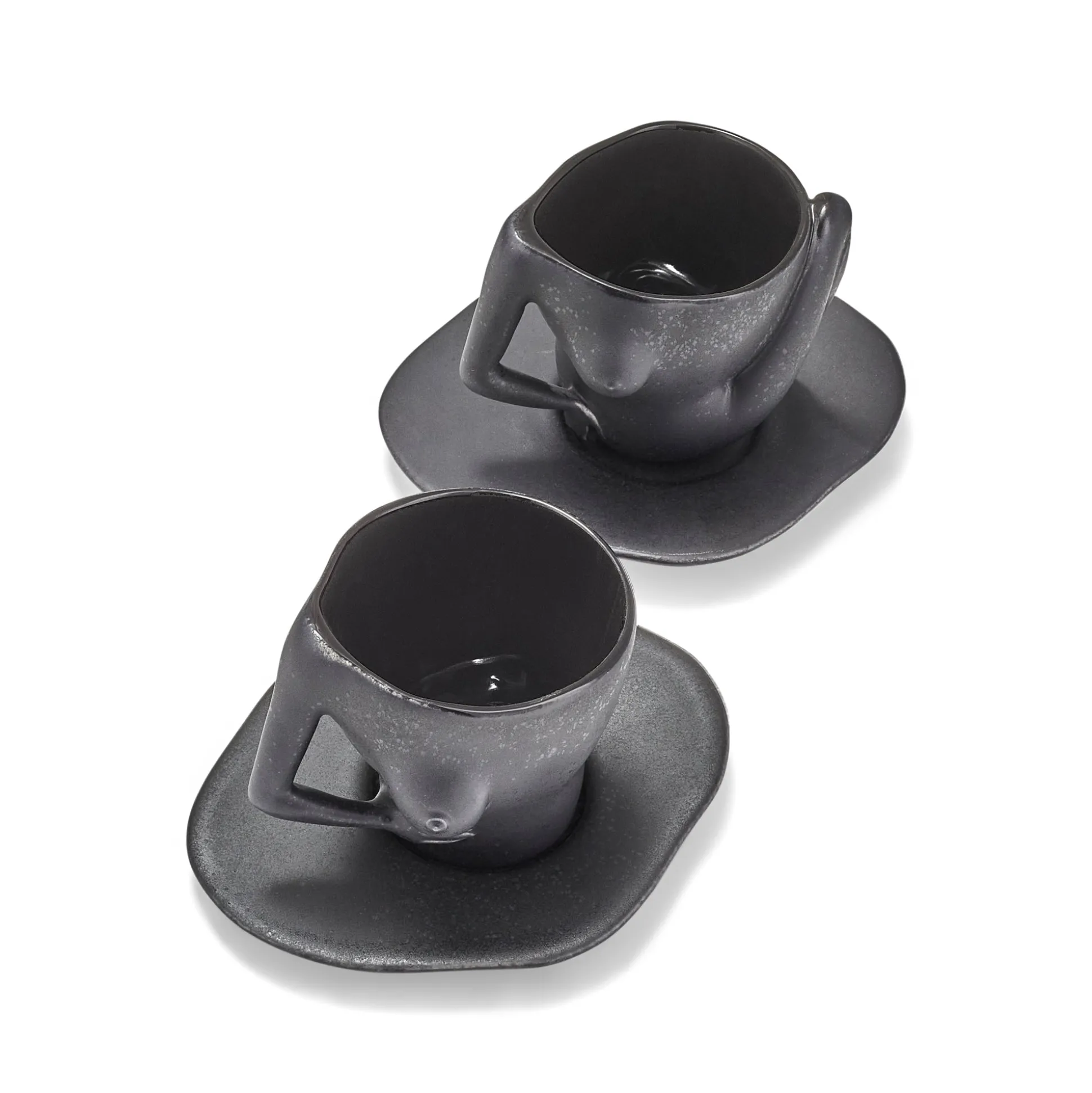 Tasses À Café Lot De 2 | Grès | Noir Chiné