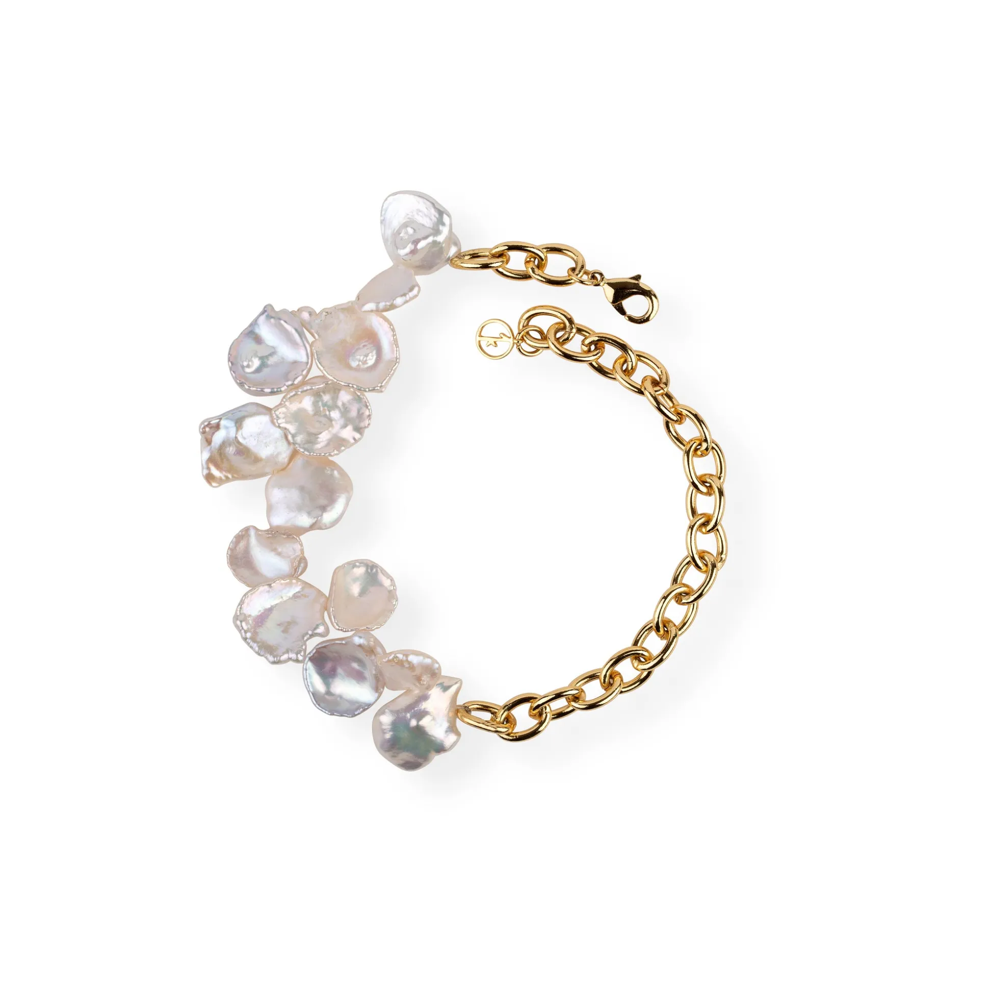 Le Bracelet De Cheville « Two Faced Shelley » Est Une Version Améliorée Des Styles Nostalgiques. Celui-Ci Est Monté Sur Une Grosse Chaîne Gourmette Plaquée Or Et À Moitié Enfilé De Perles Keshi D’Eau Douce Dépareillées.
