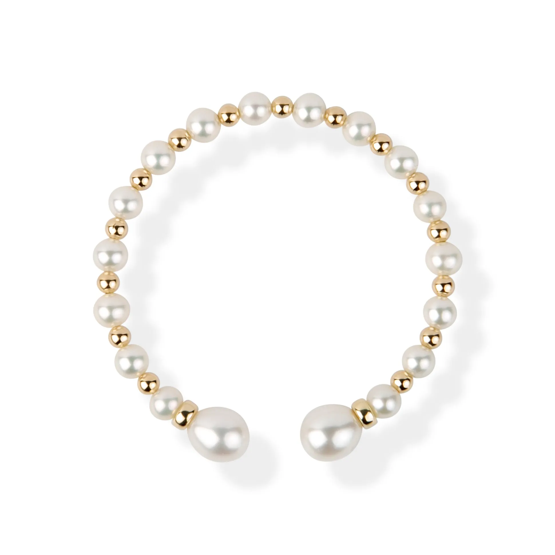 Offrant Une Version Légère Et Contemporaine Des Bijoux En Perles Classiques, Ce Bracelet Met En Valeur Une Silhouette Classique À Manchette Ouverte, Enfilée D’Une Chaîne Alternée De Perles D’Eau Douce Et De Perles Dorées À Facettes.